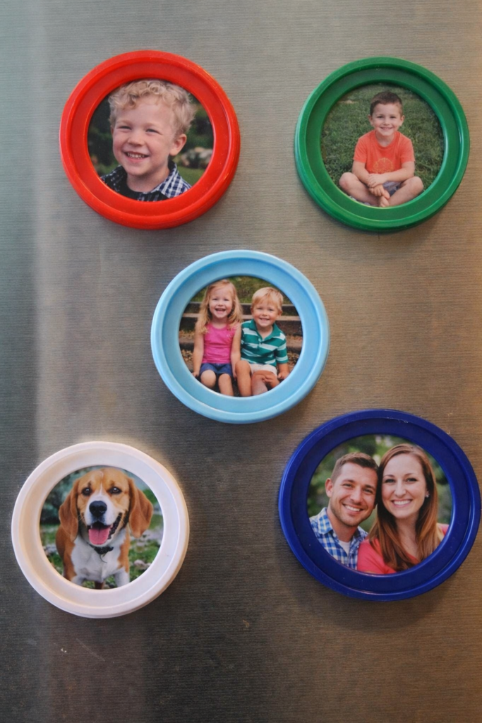 Even small lids work well under herbs or succulents.7. Make Photo Frames & Magnets