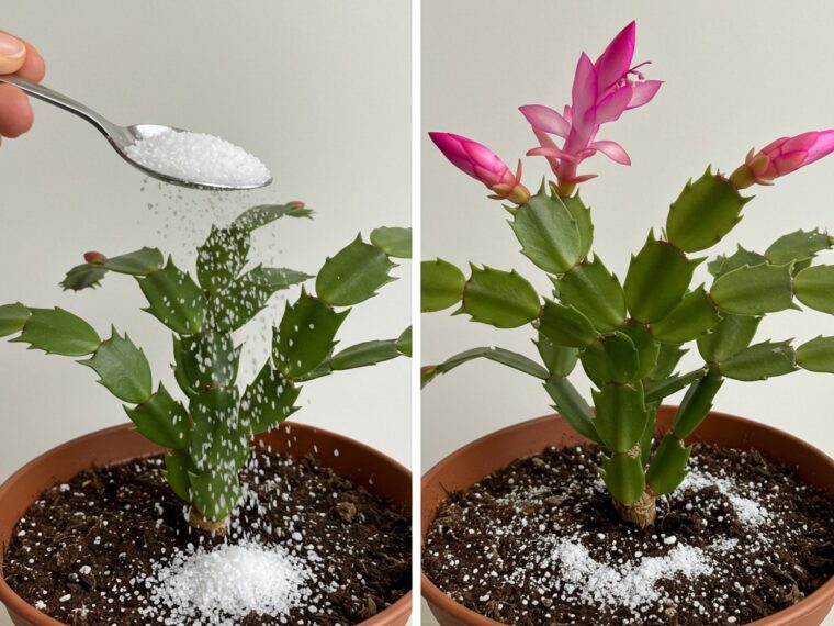 In the image, you can see a Christmas cactus (Schlumbergera) being revived with a small dose of this natural booster. Here’s how to do it safely for any indoor flowering plant: