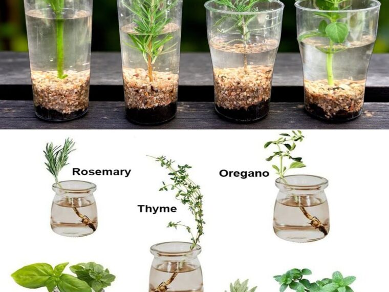 If you love cooking with fresh herbs but don’t have much space—or you want a low-maintenance way to keep your kitchen stocked with fragrant greens—then growing herbs in water is the perfect solution. As shown in the image, herbs like rosemary, thyme, oregano, basil, sage, and mint can thrive beautifully with nothing more than clean water and indirect sunlight.