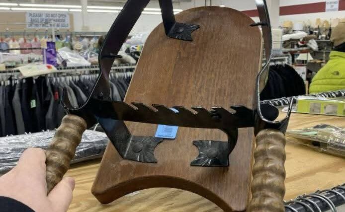 At first glance, this object may look unusual—part wood, part iron, shaped with curved handles …