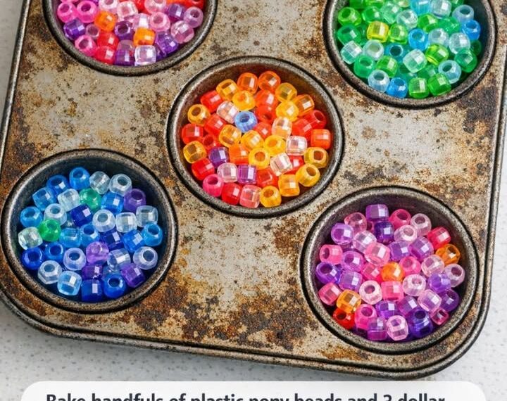 If you enjoy simple DIY projects that turn inexpensive items into something beautiful, this creative idea is going to surprise you. With just a few handfuls of colorful plastic pony beads, an old muffin tin, and a few budget-friendly items from a dollar store, you can create stunning decorations that look like stained glass. Many people are now using this trick to decorate their gardens, fences, patios, and even windows.
