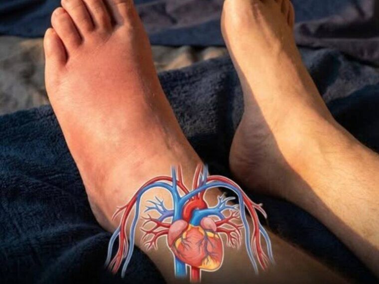The image above highlights swelling in one foot compared to the other, suggesting poor circulation or fluid retention—one possible sign that the heart is struggling to pump blood effectively.