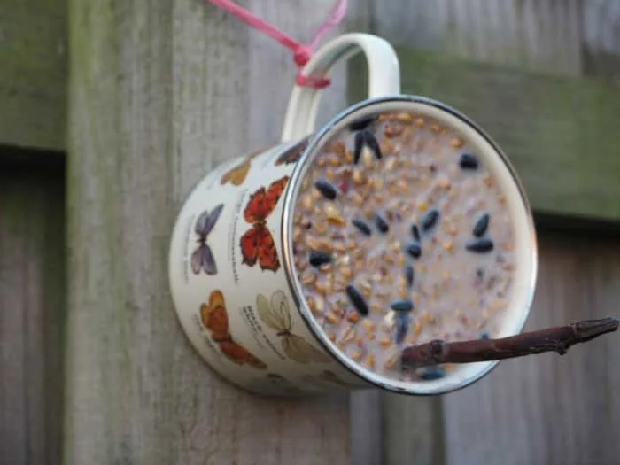 Attach your mug to a wooden base or hang it in your garden to create a charming bird feeder. It’s functional and decorative at the same time.